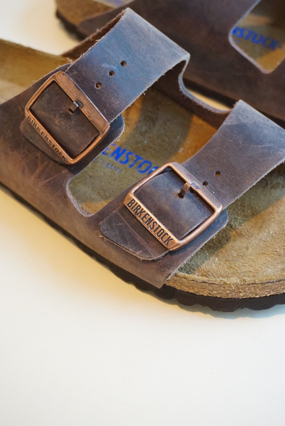 "Birkenstock" Arizona Brown Oiled Footbed Leather Slide Sandals - Size 39