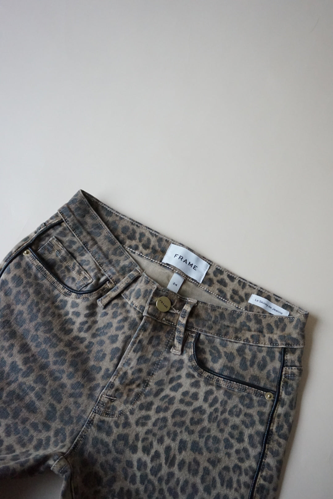 "Frame" Leopard Faux Leather Trim "Le Skinny de Jeanne" Jeans - Size 24