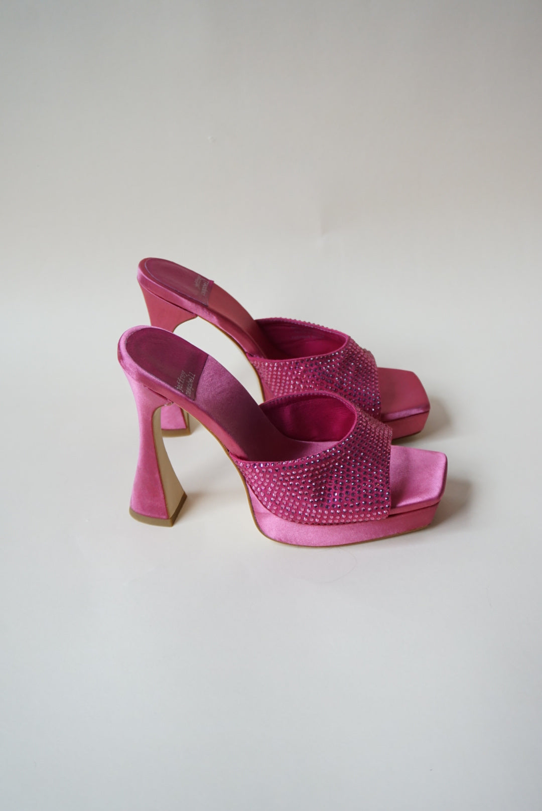 "Jeffrey Campbell" Rhinestone Pink Satin Heeled Mules - Size 7.5