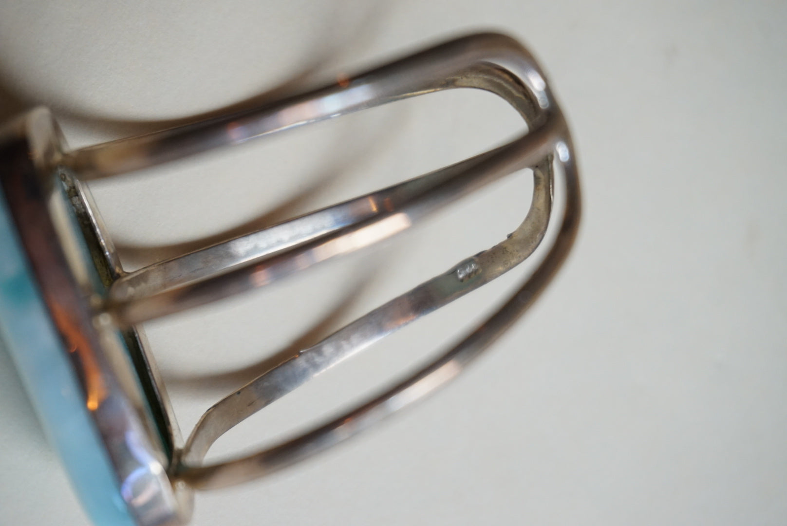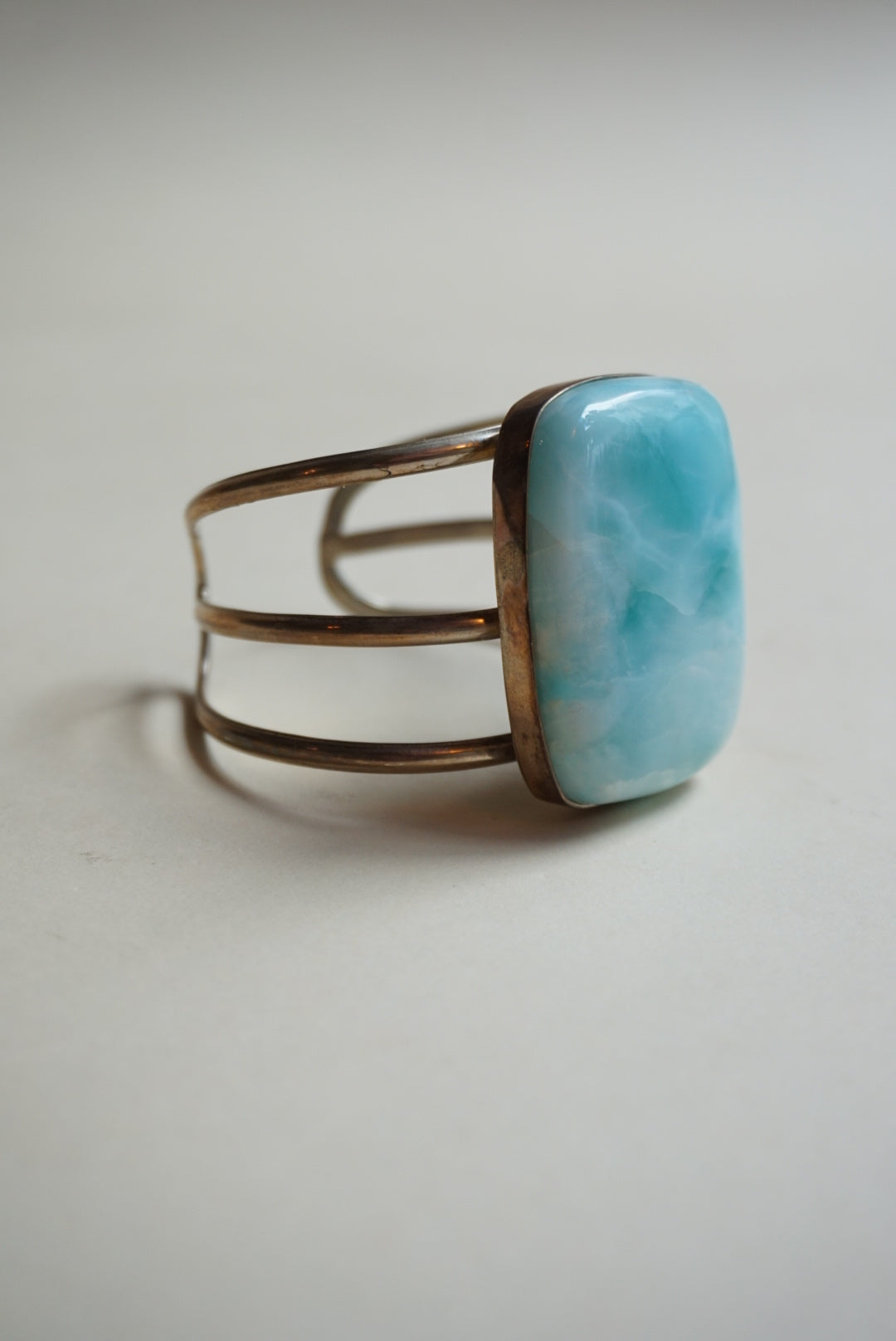 Vintage Larimar Stone Sterling Silver 925 Statement Cuff